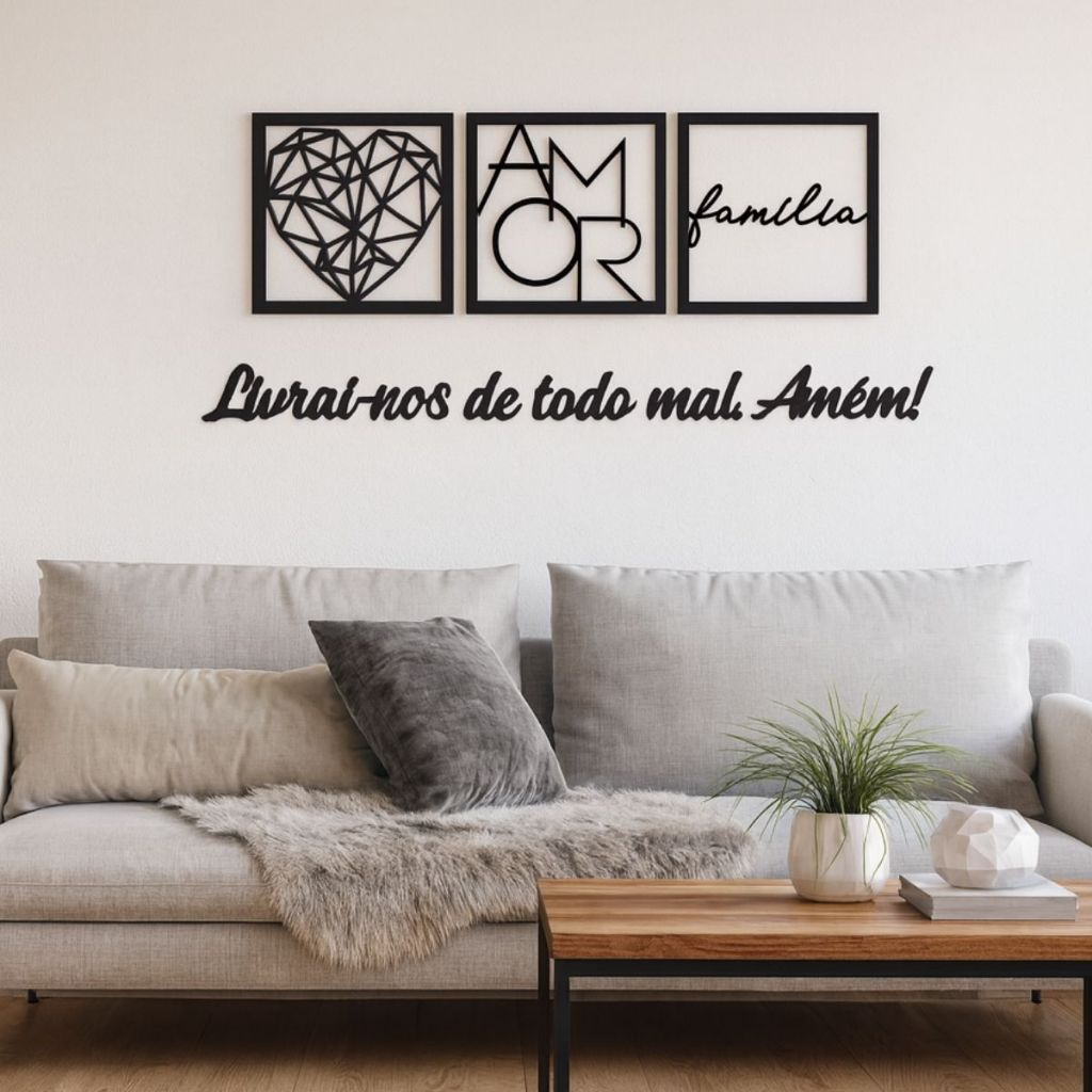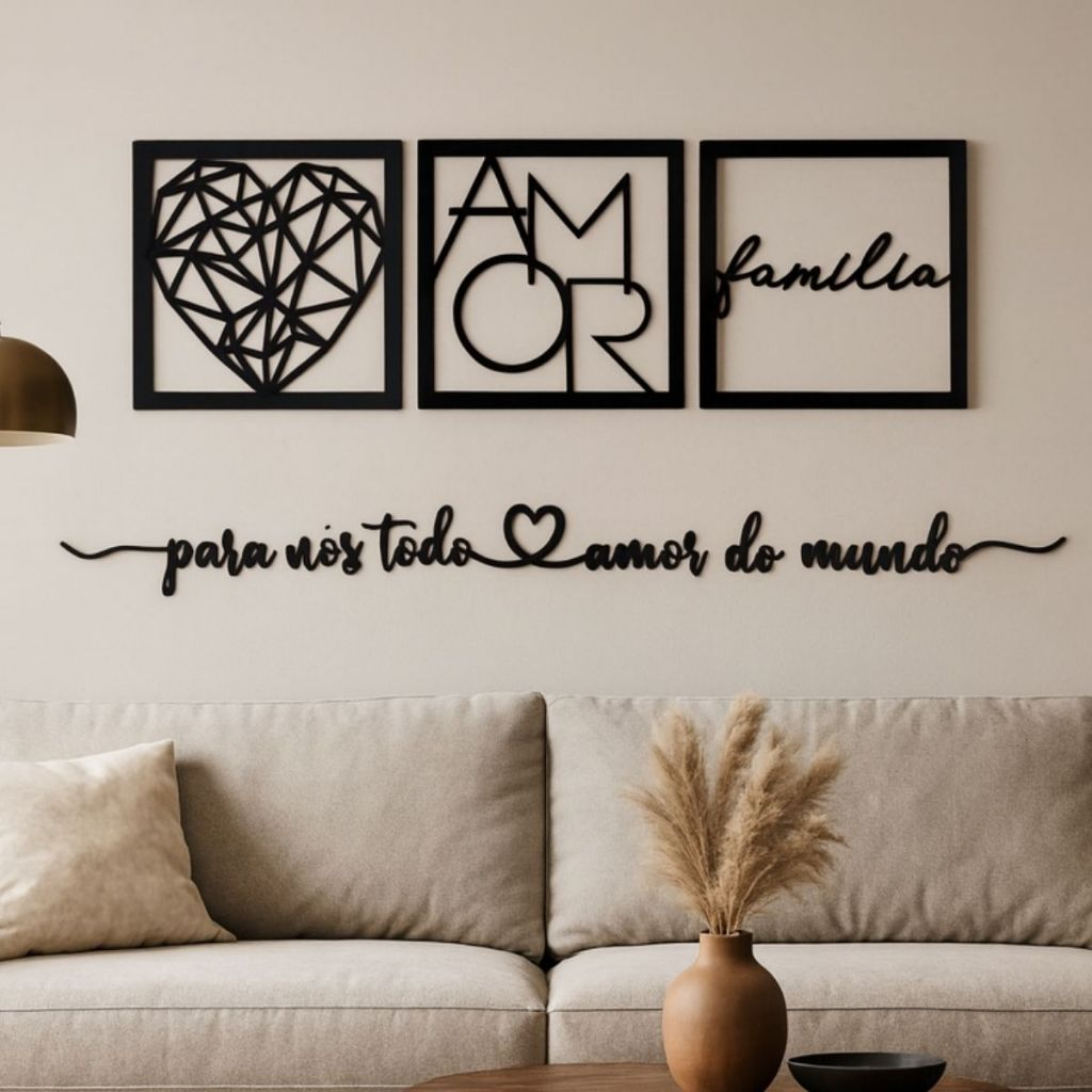 O Kit com 3 Quadros Decorativos em MDF Ecológico foi pensado para unir estilo e sentimento em uma única composição.